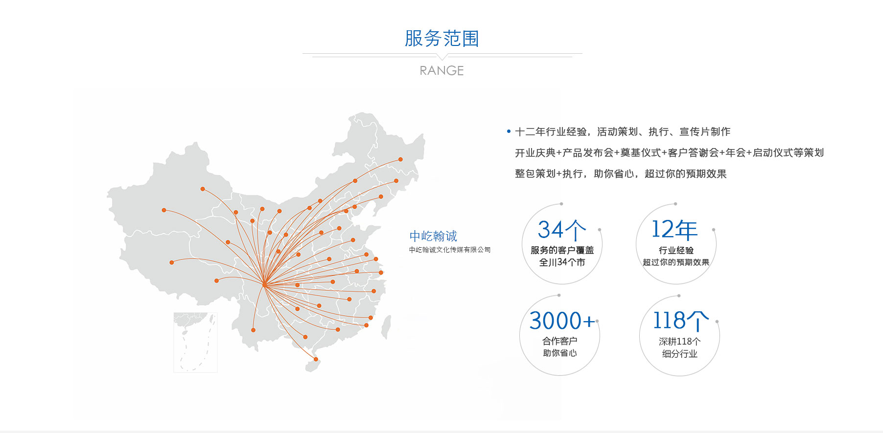 公司自成立至今服務于媒體、演繹、通訊、物流、房產、會展、金融、旅游等118個細分行業,合作客戶3000+,擁有12年行業經驗,以高效便捷的一站式服務,打造精美的活動項目效果。我們全身心傾聽,領會客戶的需求,與客戶共同探尋品牌的核心價值。我們在為客戶提供品質服務的同時,贏得了客戶的信任,為客戶創造價值。